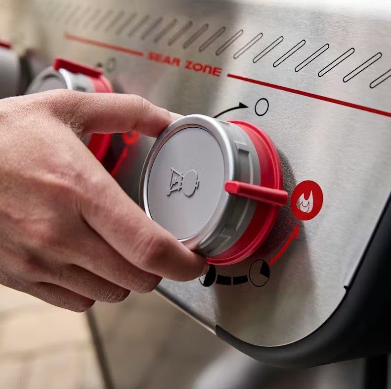 Dwa palniki z trybem Boost, wyróżniające się czerwonymi pokrętłami, generują o 40% więcej mocy w strefie Sear Zone, umożliwiając uzyskanie wyrazistych, apetycznych śladów przypieczenia na mięsie, rybach i warzywach. Zapłon Snap-Jet pozwala rozpalać poszczególne palniki jedną ręką, a precyzyjna regulacja zapewnia stabilne i równomierne ciepło na całej powierzchni grillowania.