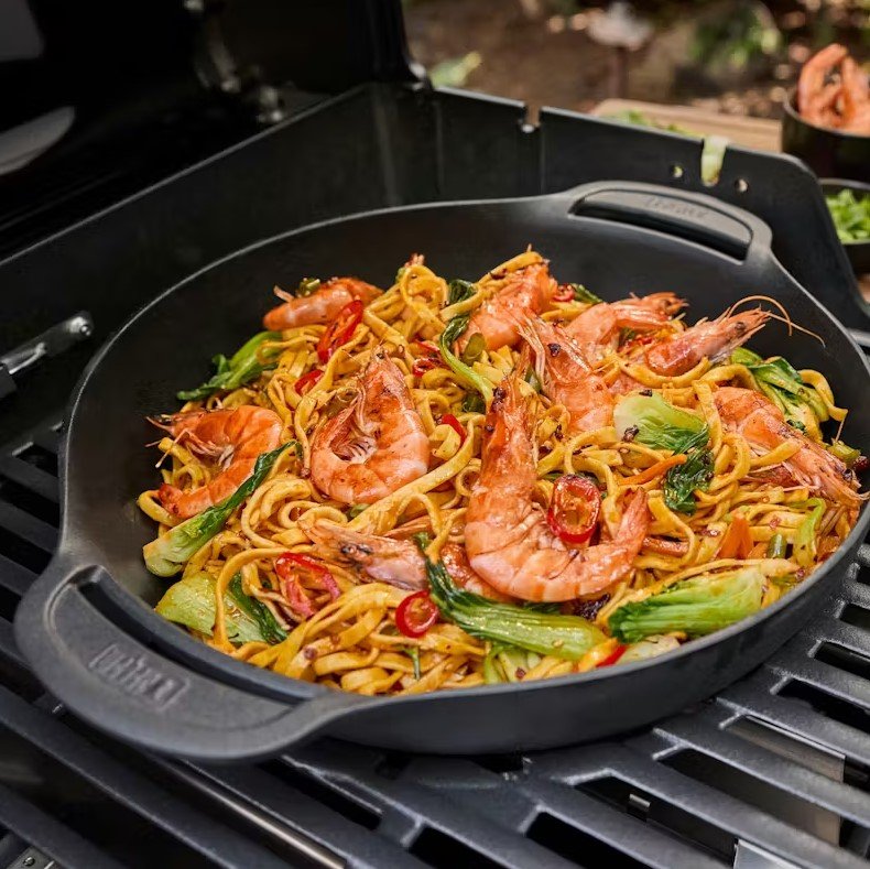 Grill oferuje dużą elastyczność użytkowania dzięki kompatybilności z systemami Weber Works oraz Weber Crafted Gourmet BBQ System. Żeliwne ruszty pokryte emalią porcelanową można obracać, dostosowując je do dodatkowych akcesoriów, takich jak płyta, kamień do pizzy czy ruszt do przypiekania w kratkę (akcesoria sprzedawane oddzielnie). Prawy stolik boczny oraz boczne szyny umożliwiają montaż praktycznych akcesoriów Weber Works, a lewy stolik boczny można złożyć, oszczędzając miejsce.